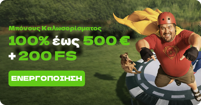 | Καλωσόρισμα νέων παικτών | 100% bonus έως 500€ + 200 FS |
